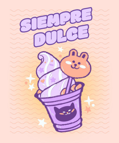 Illustrated T-Shirt Design Template Featuring an Ice-Cream With a Cute Bear-Shaped Popsicle
