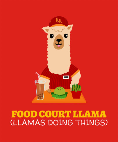 T-Shirt Design Template Featuring a Llama Working at a Grocery Store