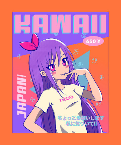 T-Shirt Design Template Featuring a Trendy Girl Illustrated in Anime Style