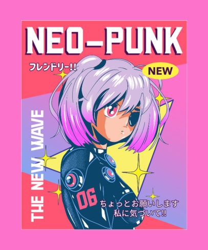 Anime T-Shirt Design Maker Featuring a Cyberpunk-Styled Character