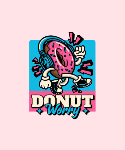 T-Shirt Design Template Featuring a Donut Cartoon Listening to Music and a Pun
