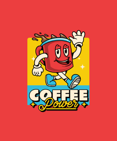 T-Shirt Design Template Featuring a Retro-Style Coffee Cup Cartoon