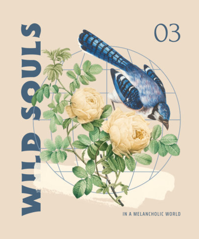 T-Shirt Design Maker Featuring a Floral Theme and Bird Graphics
