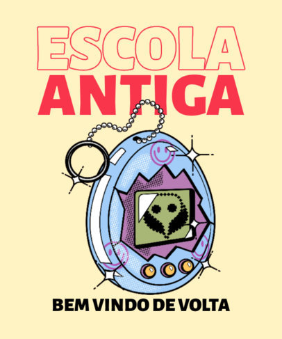 Retro T-Shirt Design Template with a Digital Pet Device Graphic