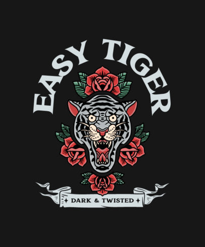Illustrated T-Shirt Design Generator Featuring an Angry Tiger Surrounded by Roses