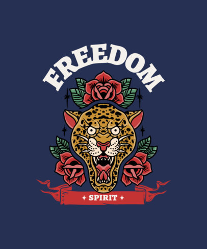 Old-School Tattoo-Styled T-Shirt Design Template Featuring a Roaring Panther Illustration