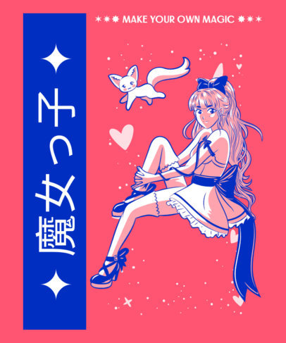 T-Shirt Design Maker Featuring a Magical Anime-Style Girl Illustration