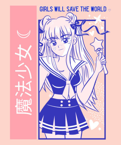 Anime T-Shirt Design Creator Featuring a Magical Girl with Stars