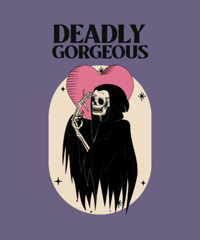T-Shirt Design Template with a Funny Reaper Putting on Makeup