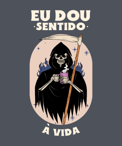 T-Shirt Design Creator Featuring a Funny Reaper Holding a Coffee