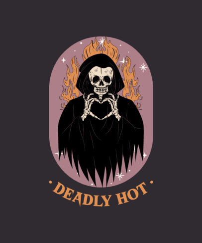 T-Shirt Design Template Featuring a Funny Reaper with Illustrated Flames