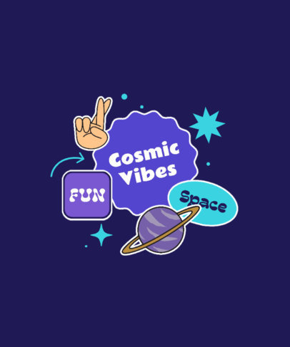 These cool t-shirt designs feature fun stickers like hand gestures, food, planets, and cartoonish characters. Customize them with your favorite positive quotes!