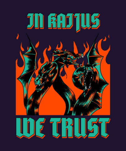 T-Shirt Design Template of an Illustrated Kaijus Monster