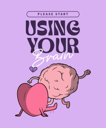 Funny T-Shirt Design Template for Valentine's Day with a Heart and a Brain