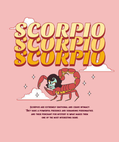 Funny T-Shirt Design with a Zodiac-Themed Scorpion Character Drawing