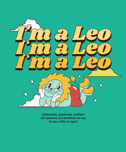 Zodiac T-Shirt Design Creator Featuring a Smiling Lion Illustration