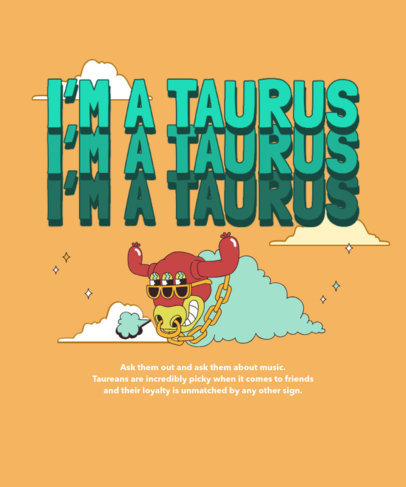 Create a unique t-shirt design to wear anywhere with Placeit fantastic illustrations! Check out these ones featuring funny characters related to different zodiac signs from which you can choose and style with a few clicks. What are you waiting for? Try Placeit's online t-shirt design templates and easily customize as many as you want!