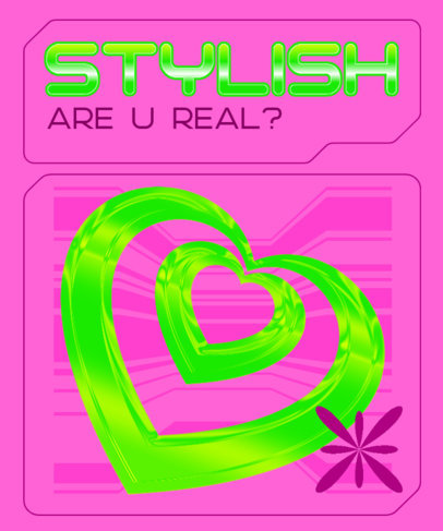Y2K-Inspired T-Shirt Design Template with 3D Graphics