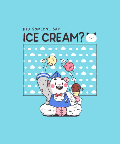 Kawaii T-Shirt Design Template Featuring an Ice Cream-Juggling Yeti Graphic