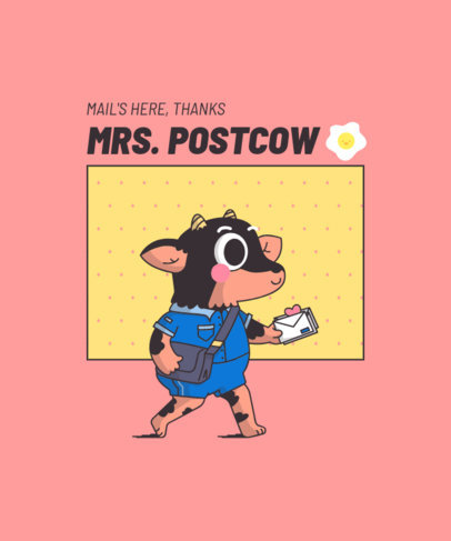 Kawaii T-Shirt Design Maker Featuring a Funny Letter Carrier Cow