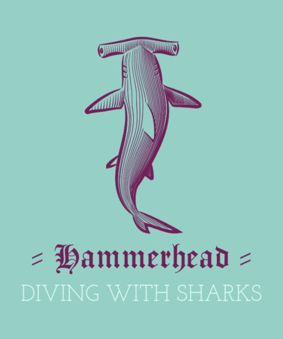 T-Shirt Design Template Featuring a Hammerhead Shark