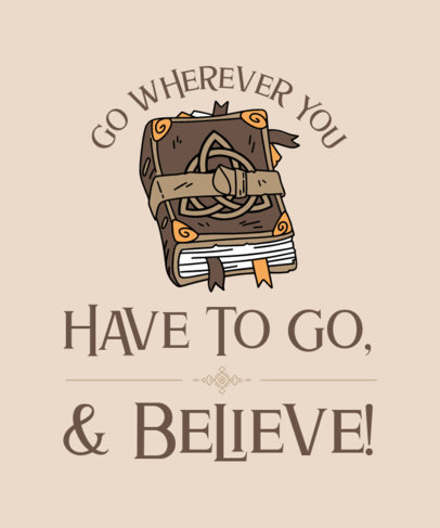 LOTR-Inspired T-Shirt Design Template Featuring a Spell Book Clipart and a Quote