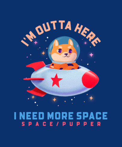 Illustrated T-Shirt Design Template Featuring a Dog on a Space Rocket