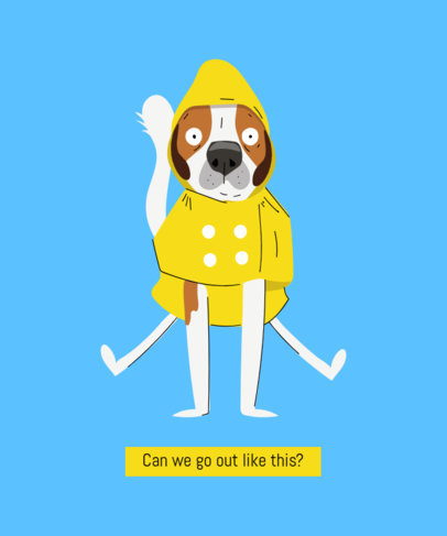 Illustrated T-Shirt Design Maker Featuring a Dog Wearing a Raincoat