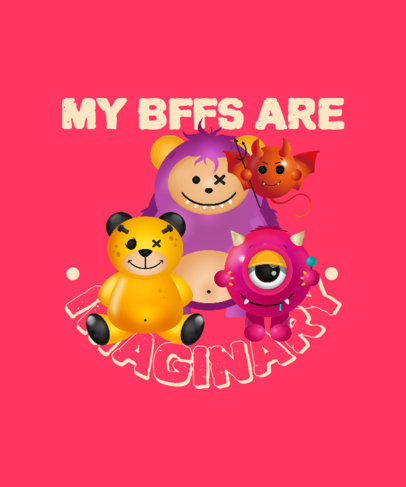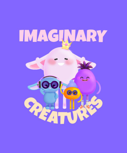 T-Shirt Design Template Featuring a Squad of Imaginary Characters