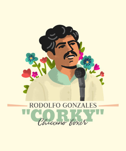 T-Shirt Design Maker with an Illustrated Portrait of Hispanic Boxer Rodolfo Gonzales Corky