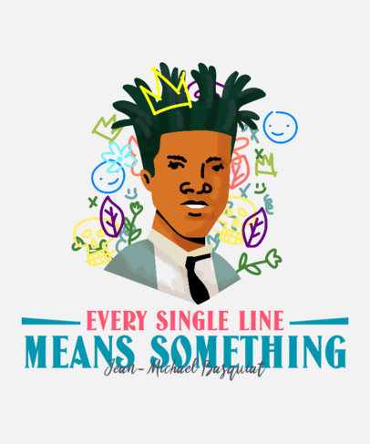 T-Shirt Design Template with an Illustrated Portrait of Jean-Michel Basquiat