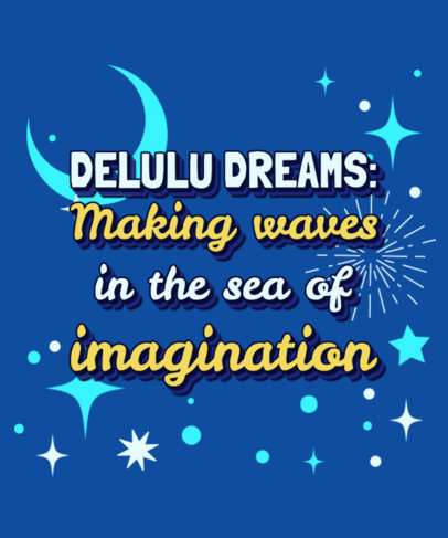 T-Shirt Design Creator Featuring a Quote About Delulu Dreams and a Starry Background