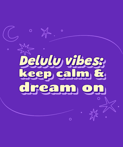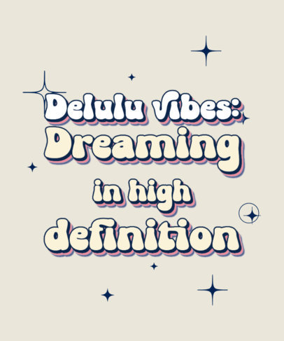 T-Shirt Design Template with a Starry Background and a Delulu-Vibes Quote