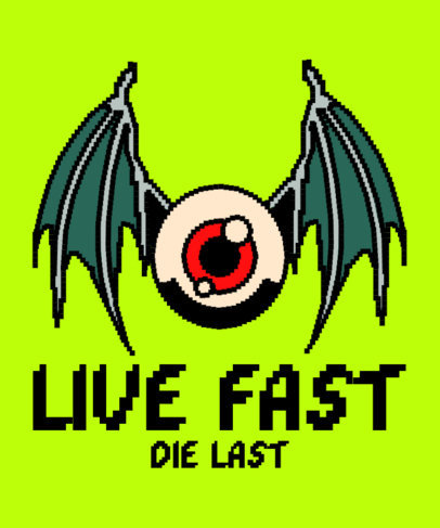 T-Shirt Design Template Featuring a Winged Eye with a Pixelated Style