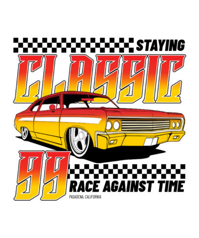 This T-Shirt Design Template features a classic racing car illustration, perfect for creating custom sports, hobbies, quote, and retro t-shirts for print-on-demand (POD) services.