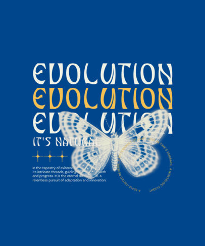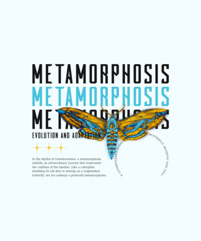 T-Shirt Design Template with a Butterfly Graphic and a Repeated Word