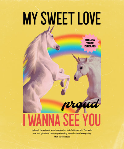 Quote T-Shirt Design Template Featuring Illustrated Unicorns and Rainbows