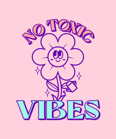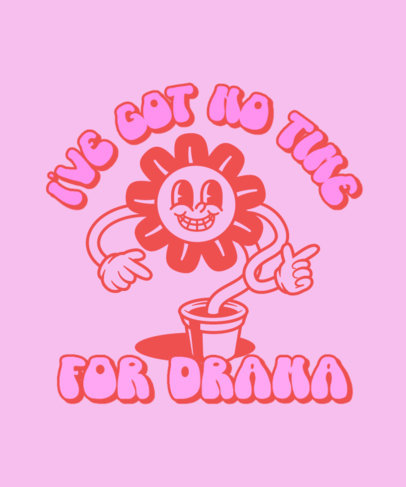 T-Shirt Design Template with an Illustrated Flower and a Drama-Free-Themed Quote