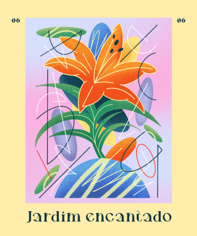 T-Shirt Design Generator Featuring a Lily Illustration Surrounded by Abstract Shapes