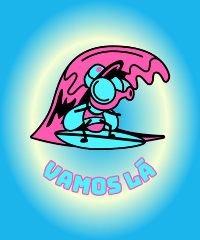 T-Shirt Design Template Featuring a Cartoonish Surfer Character Illustration