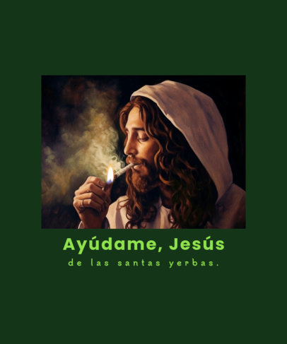 T-Shirt Design Template with an Illustration of Jesus Lighting up a Cigar