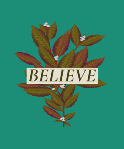 Botanical T-Shirt Design Template Featuring a Believe Text