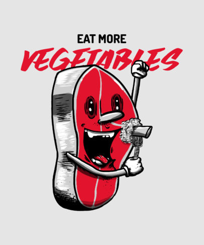 Illustrated T-Shirt Design Template Featuring a Steak Eating Veggies
