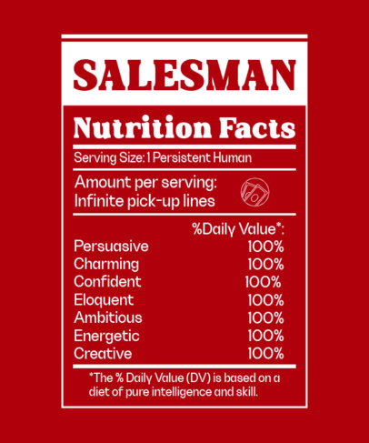 T-Shirt Design Generator with Sarcastic Salesman Nutritional Facts