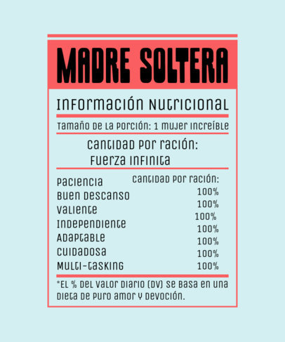 T-Shirt Design Creator Featuring a Single Mom Ingredients Chart