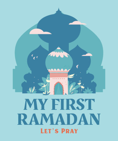 Colorful T-Shirt Design Template for Ramadan with a Mosque Illustration