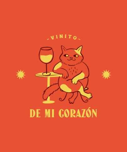 T-Shirt Design Template for Wine Tasters Featuring an Illustrated Cat