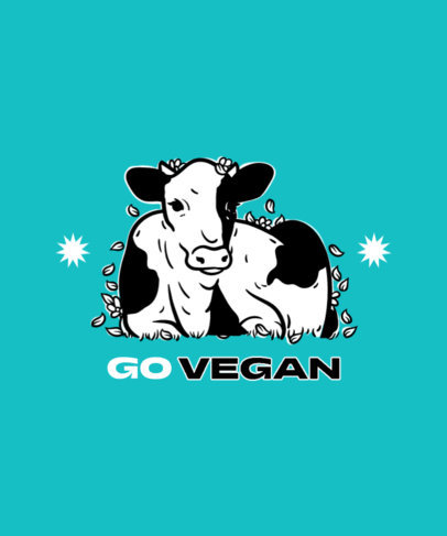 T-Shirt Design Template Featuring a Vegan Message and an Illustration of a Cow