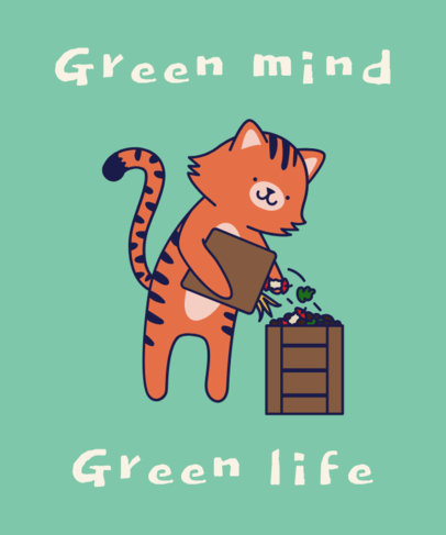 T-Shirt Design Template with a Cartoon Tiger Making Compost