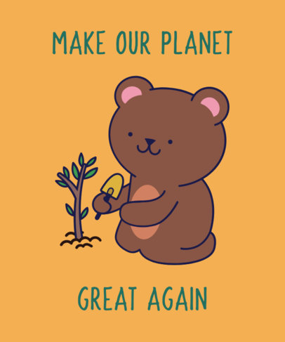 Cute T-Shirt Design Template of a Bear Planting a Tree